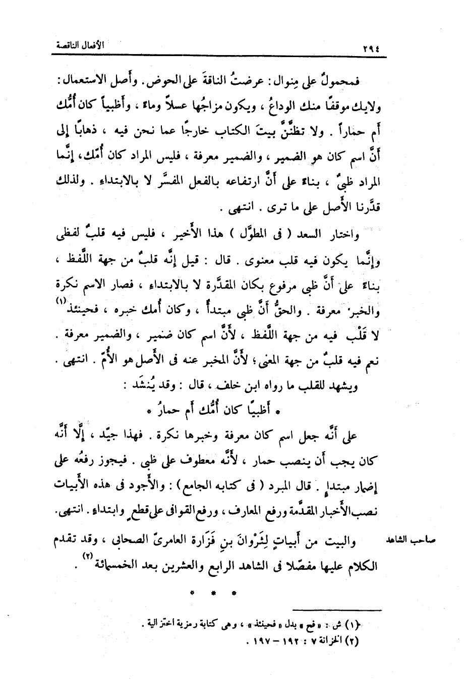 فَمَحْمُول على منوال: عرضت النَّاقة على الْحَوْض. وأصل الِاسْتِعْمَال: وَلَا بك موقفا مِنْك الْوَدَاع وَيكون مزاجها عسلاً وَمَاء وأظبياً كَانَ أمك أم حمارا.