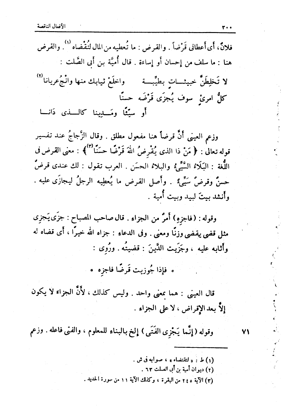وَزعم الْعَيْنِيّ أَن قرضا هُنَا مفعول مُطلق.)