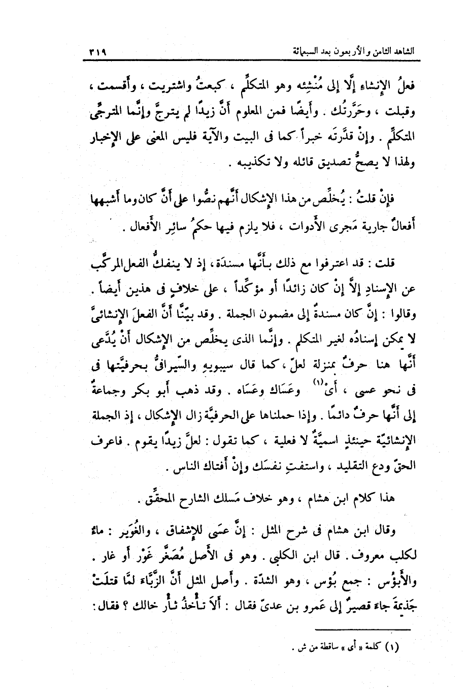 هَذَا كَلَام ابْن هِشَام وَهُوَ خلاف مَسْلَك الشَّارِح الْمُحَقق.)