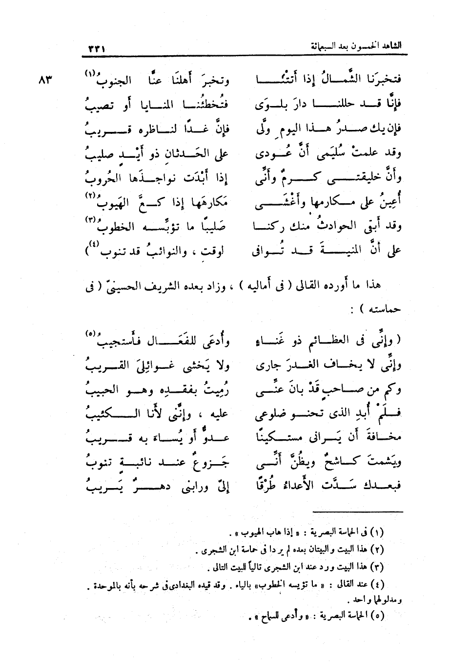 هَذَا مَا أوردهُ القالي فِي أَمَالِيهِ وَزَاد بعده الشريف الْحُسَيْنِي فِي حماسته: الوافر