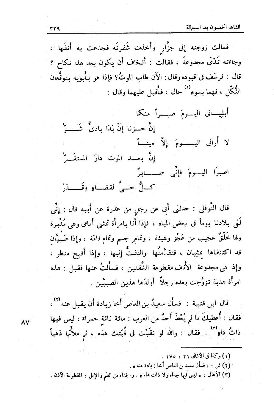 (اصبرا الْيَوْم فَإِنِّي صابر ... كل حَيّ لقَضَاء وَقدر)