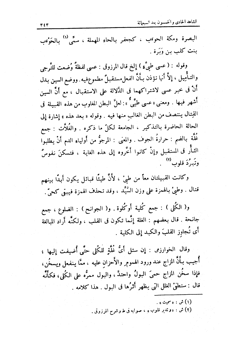 وَقَوله: عَسى طَيئ ... إِلَخ قَالَ المرزوقي: عَسى لَفْظَة وضعت للترجي والتأميل إِلَّا أَنَّهَا تؤذن بِأَن الْفِعْل مُسْتَقْبل مطموع فِيهِ. وَوضع السِّين بدل أَن فِي خبر عَسى لاشْتِرَاكهمَا فِي الدّلَالَة على الِاسْتِقْبَال مَعَ أَن السِّين أشهر فِيهَا.