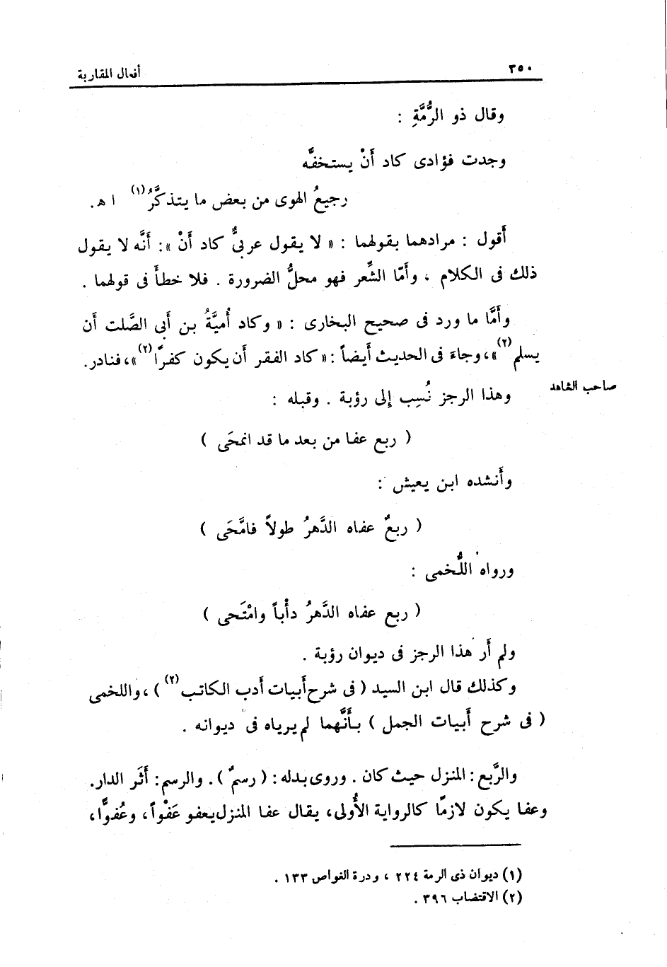 ربع عفاه الدَّهْر طولا فامحى وَرَوَاهُ اللَّخْمِيّ: ربع عفاه الدَّهْر دأباً وامتحى وَلم أر هَذَا الرجز فِي ديوَان رؤبة.