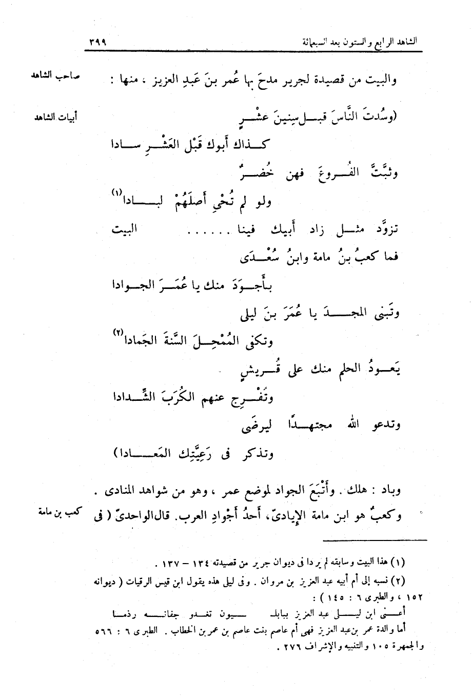 وَالْبَيْت من قصيدة لجرير مدح بهَا عمر بن عبد الْعَزِيز مِنْهَا: