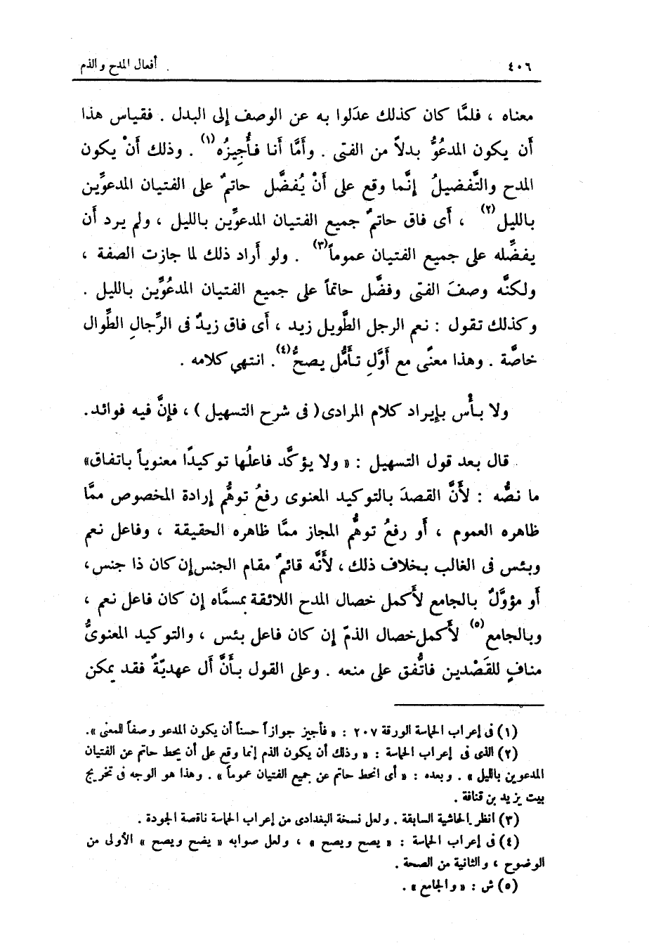 وَلَا بَأْس بإيراد كَلَام الْمرَادِي فِي شرح التسهيل فَإِن فِيهِ فَوَائِد.