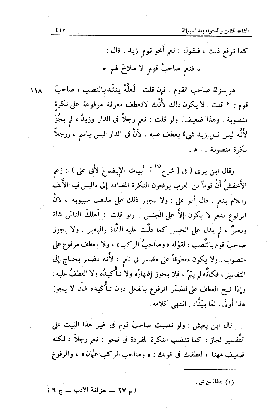 كتاب خزانة الأدب ولب لباب لسان العرب للبغدادي (اسم الجزء: 9)