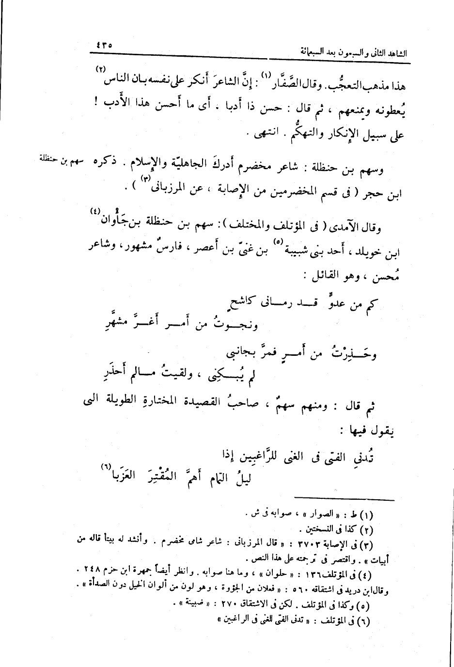 وَقَالَ الْآمِدِيّ فِي المؤتلف والمختلف: سهم بن حَنْظَلَة بن جأوان بن خويلد أحد بني شبيبة بن غَنِي بن أعصر فَارس مَشْهُور وشاعر محسن وَهُوَ الْقَائِل: الْكَامِل