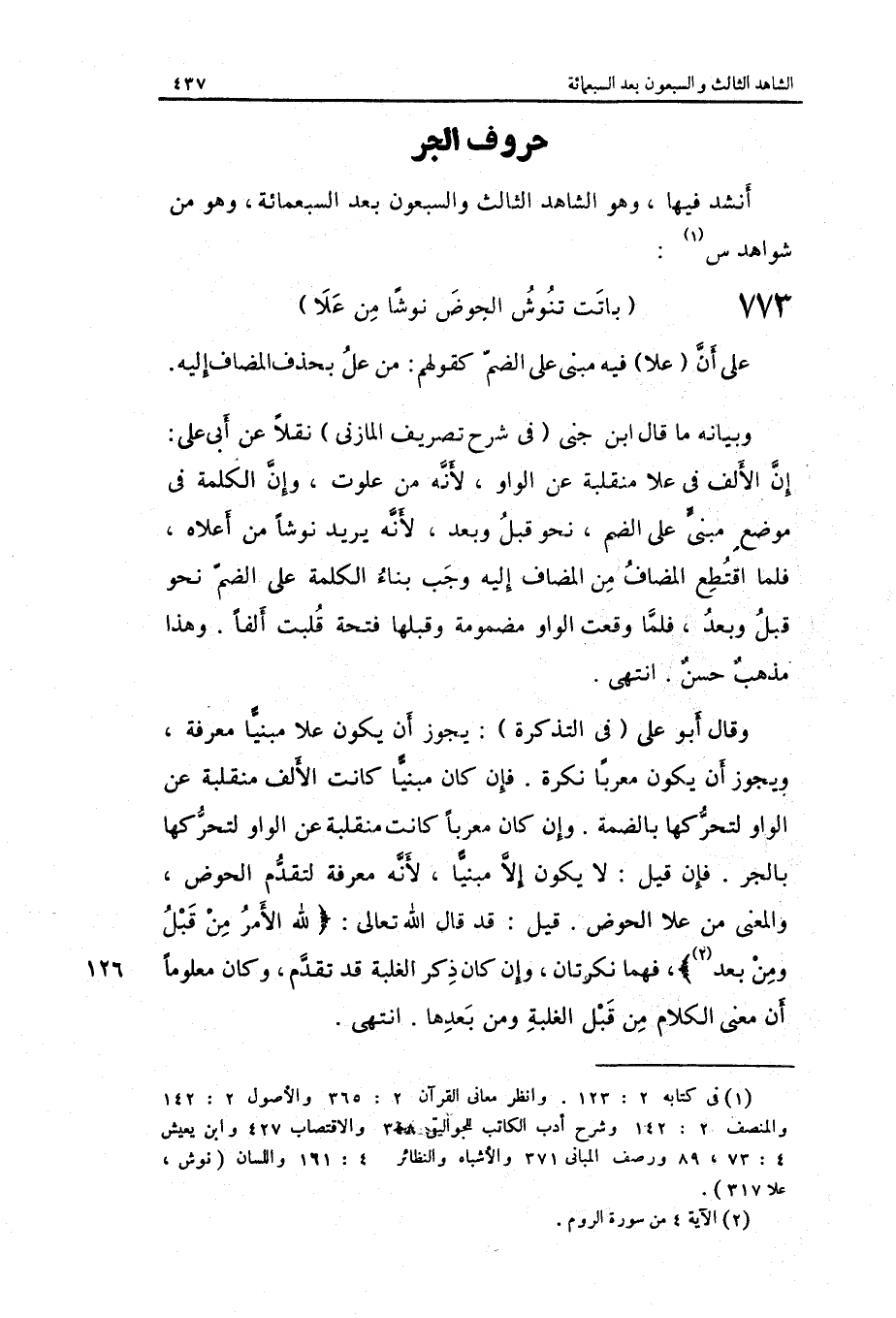 (الشَّاهِد الثَّالِث وَالسَّبْعُونَ بعد السبعمائة)