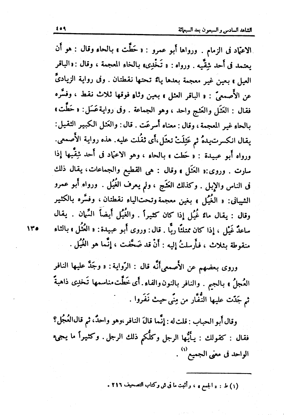 وَقَالَ أَبُو الْحباب: قلت لَهُ: إِنَّمَا قَالَ النافر وَهُوَ وَاحِد ثمَّ قَالَ الْعجل فَقَالَ: كَقَوْلِك: يَا أَيهَا الرجل وكلكم ذَلِك الرجل. وَكَثِيرًا مَا يَجِيء الْوَاحِد فِي معنى الْجَمِيع.
