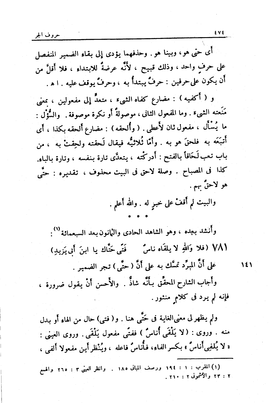 على أَن الْمبرد تمسك بِهِ على أَن حَتَّى تجر الضَّمِير.