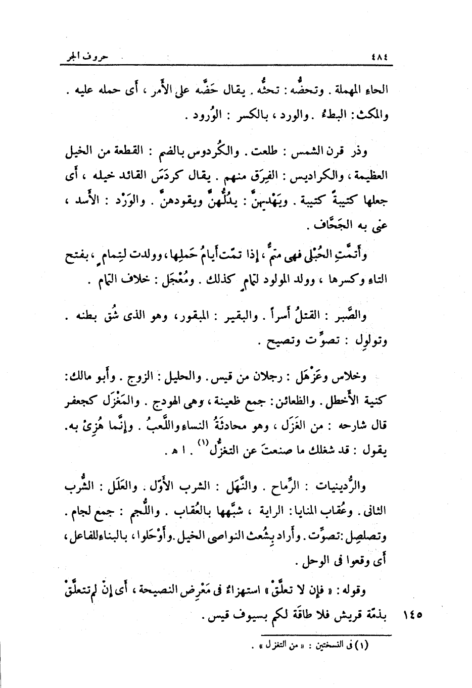 الْحَاء الْمُهْملَة. وتحضه: تحثه. يُقَال: حضه على الْأَمر أَي: حمله عَلَيْهِ. والمكث: البطء. والورد بِالْكَسْرِ: الْوُرُود.