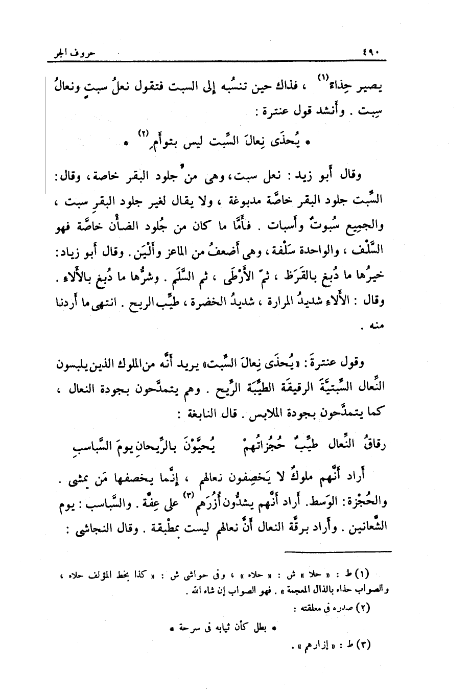 وَقَول عنترة: يحذى نعال السِّبت يُرِيد أَنه من الْمُلُوك الَّذين يلبسُونَ النِّعَال السبتية الرقيقة الطّيبَة)