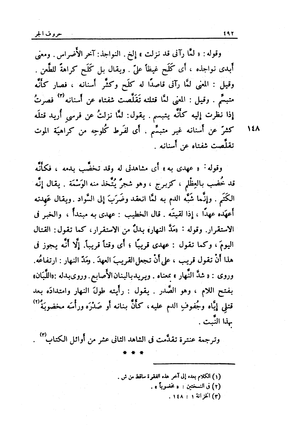 وترجمة عنترة تقدّمت فِي الشَّاهِد الثَّانِي عشر من أَوَائِل الْكتاب.