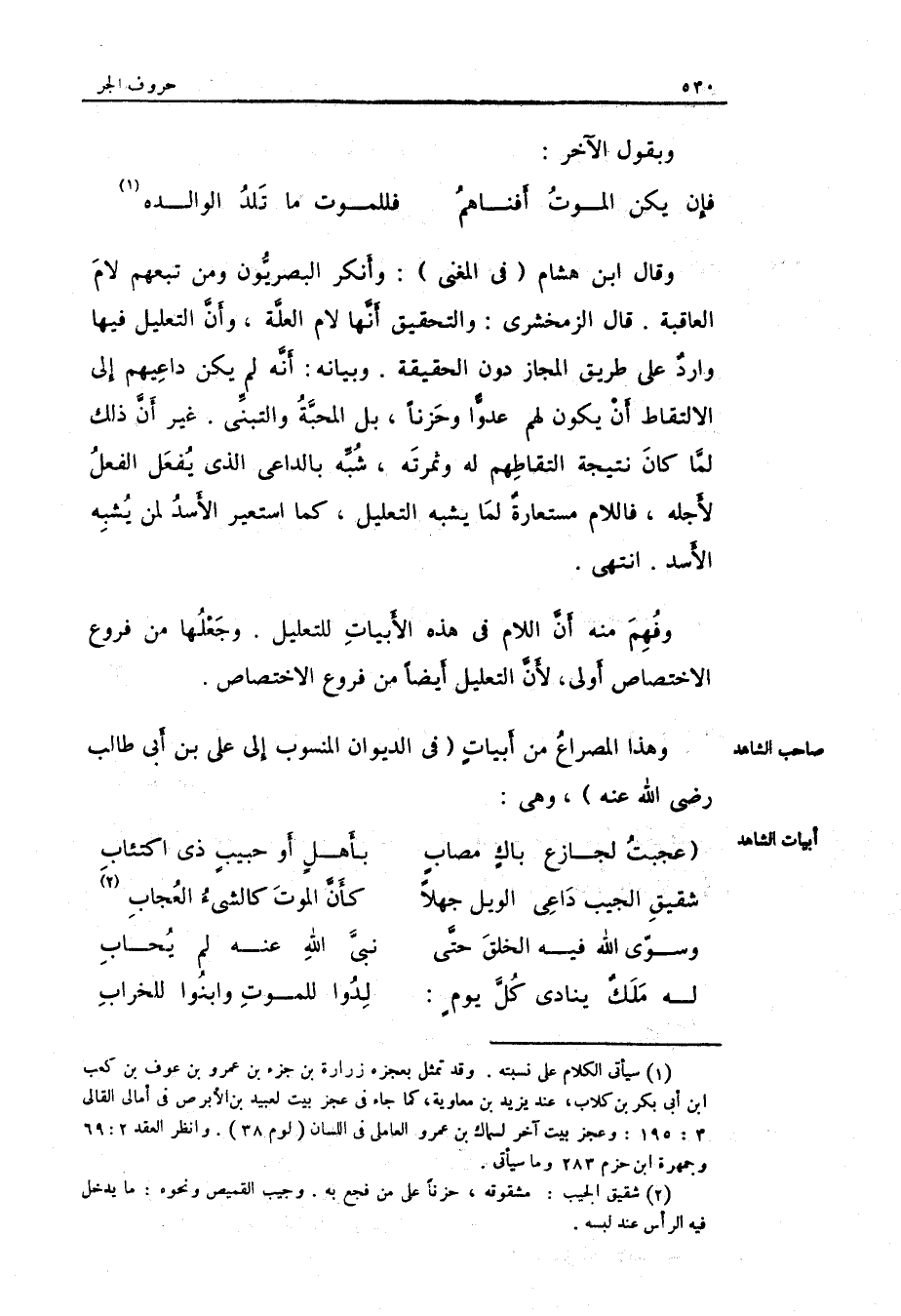 وَفهم مِنْهُ أَن اللَّام فِي هَذِه الأبيات للتَّعْلِيل. وَجعلهَا من فروع الِاخْتِصَاص أولى لِأَن التَّعْلِيل أَيْضا من فروع الِاخْتِصَاص.