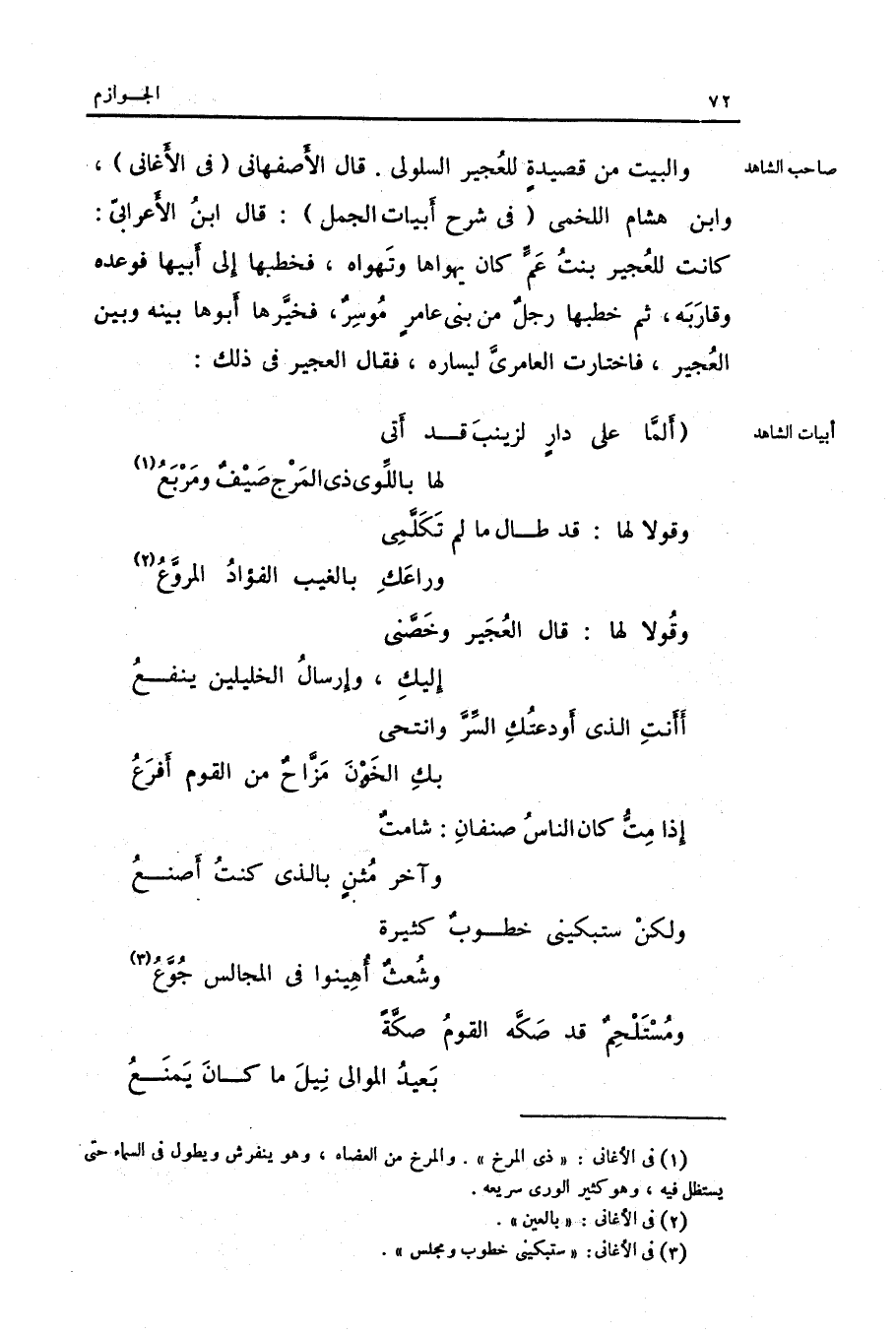 (وقولا لَهَا: قَالَ العجير وخصني ... إِلَيْك وإرسال الخليلين ينفع)