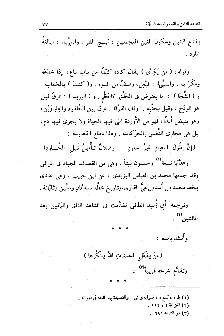 وَأنْشد بعده: من يفعل الْحَسَنَات الله يشكرها