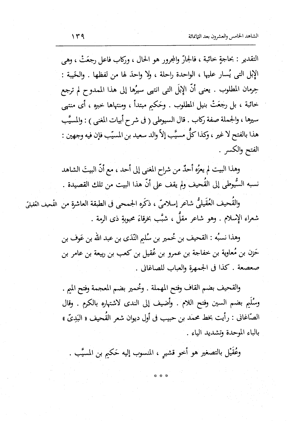 وَهَذَا الْبَيْت لم يعزه أحد من شرَّاح الْمُغنِي إِلَى أحد مَعَ أَن الْبَيْت الشَّاهِد نسبه السُّيُوطِيّ إِلَى القحيف وَلم يقف على أَن هَذَا الْبَيْت من تِلْكَ القصيدة.)