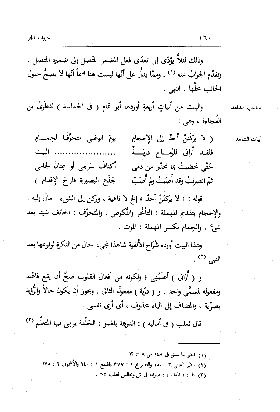 وَذَلِكَ لِئَلَّا يُؤَدِّي إِلَى تعدِي فعل الْمُضمر الْمُتَّصِل إِلَى ضَمِيره الْمُتَّصِل. وَتقدم الْجَواب عَنهُ. وَمِمَّا يدل على أَنَّهَا لَيست هُنَا اسْما أَنَّهَا لَا يَصح حُلُول الْجَانِب محلهَا. انْتهى.