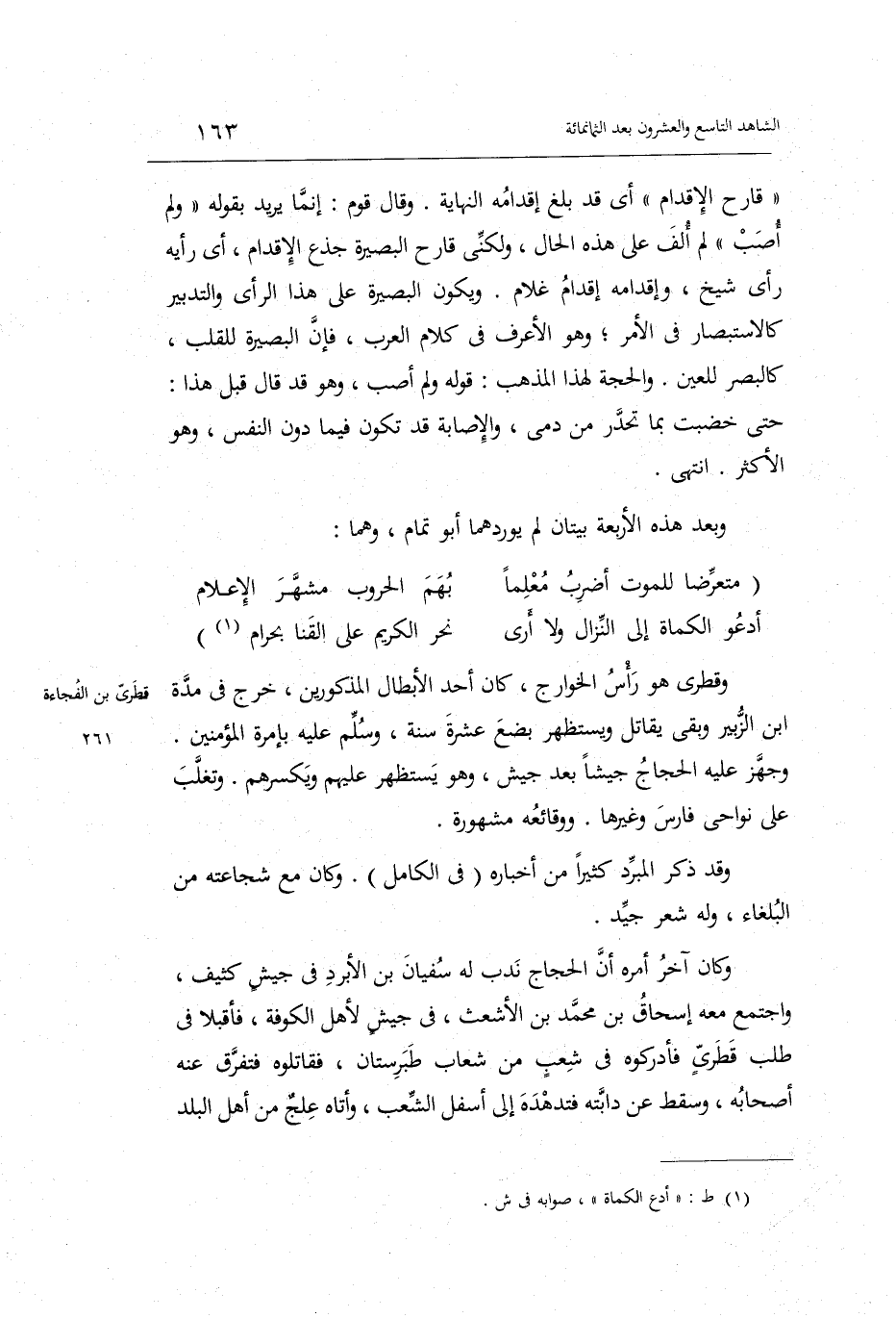(أَدْعُو الكماة إِلَى النزال وَلَا أرى ... نحر الْكَرِيم على القنا بِحرَام)
