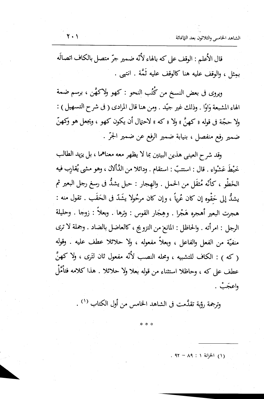 ويروى فِي بعض النّسخ من كتب النَّحْو: كَهُوَ وَلَا كهن برسم ضمة الْهَاء المشبعة واواً. وَذَلِكَ غير جيد. وَمن هُنَا قَالَ الْمرَادِي فِي شرح التسهيل: وَلَا حجَّة فِي قَوْله: كهن وَلَا كه لاحْتِمَال أَن يكون كَهُوَ وَيجْعَل هُوَ وكهن ضمير رفع منفضل بنيابة ضمير الرّفْع عَن ضمير الْجَرّ.