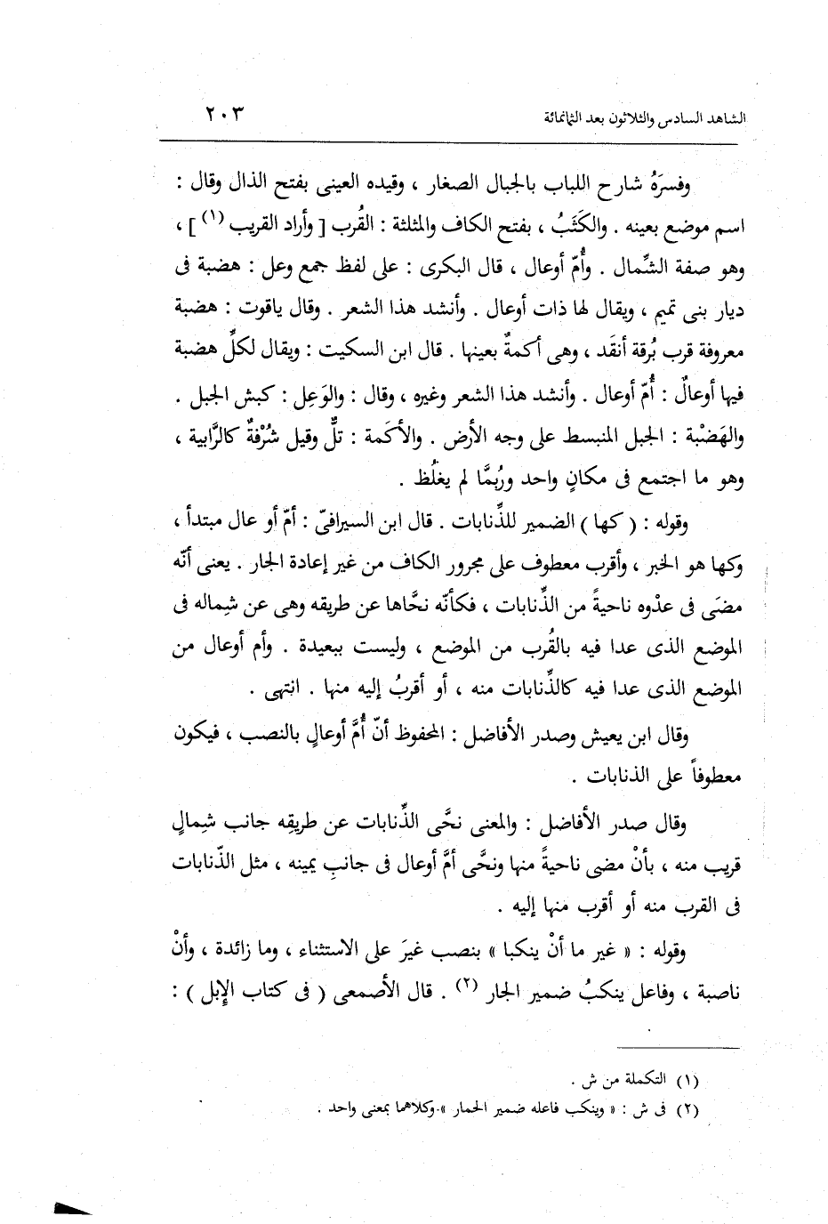 وَقَوله: كها الضَّمِير للذنابات. قَالَ ابْن السيرافي: أم أوعال: مُبْتَدأ وكها هُوَ الْخَبَر وَأقرب مَعْطُوف على مجرور الْكَاف من غير إِعَادَة الْجَار.