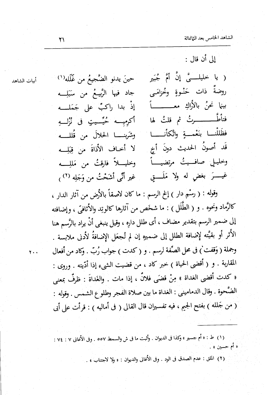 (يَا خليلي إِن أم جسير ... حِين يدنو الضجيع من غلله)
