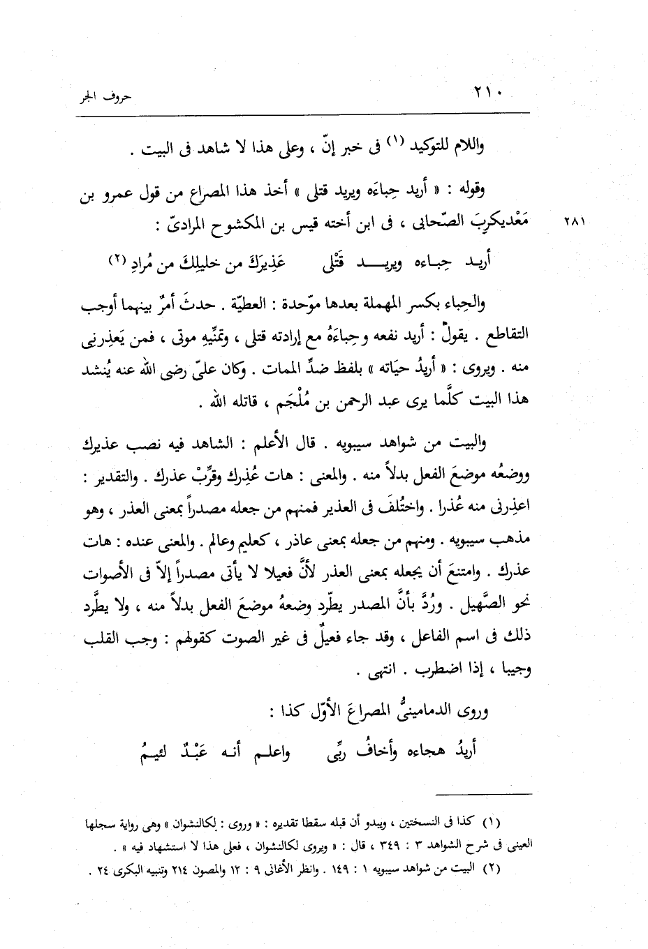 (أُرِيد حباءه وَيُرِيد قَتْلِي ... عذيرك من خَلِيلك من مُرَاد)