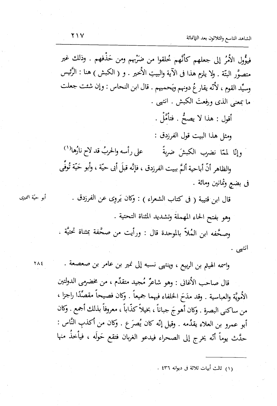 وَالظَّاهِر أَن أَبَا حَيَّة ألم بِبَيْت الفرزدق فَإِنَّهُ قبل أبي حَيَّة وَأَبُو حَيَّة توفّي فِي بضع وَثَمَانِينَ وَمِائَة.