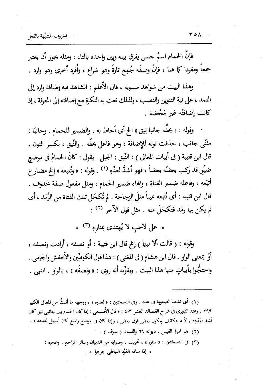 قَالَ ابْن هِشَام فِي الْمُغنِي: هَذَا قَول الْكُوفِيّين والأخفش والجرمي. وَاحْتَجُّوا بِأَبْيَات مِنْهَا هَذَا الْبَيْت. ويقويه أَنه روى: وَنصفه بِالْوَاو. انْتهى.