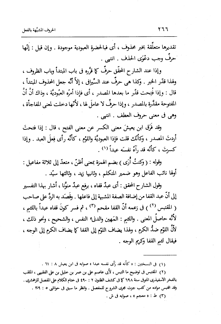 وَقَول الشَّارِح الْمُحَقق: أَي عبد قَفاهُ بِرَفْع عبد منوناً أَشَارَ بِهَذَا التَّفْسِير إِلَى أَن عبد الْقَفَا من إِضَافَة الصّفة المشبهة إِلَى فاعلها.