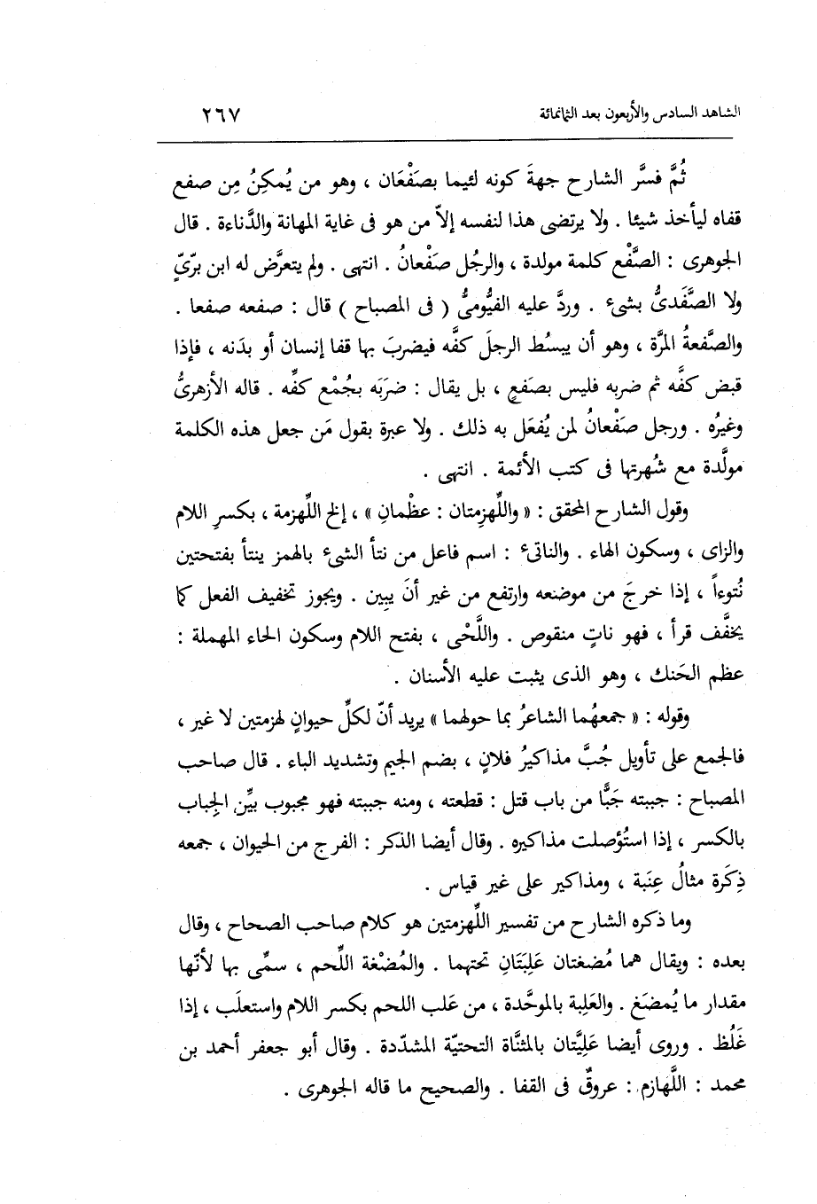 وَقَوله: جَمعهمَا الشَّاعِر بِمَا حولهما يُرِيد أَن لكل حَيَوَان لهزمتين لَا غير فالجمع على تَأْوِيل جب مذاكير فلَان بِضَم الْجِيم وَتَشْديد الْبَاء.