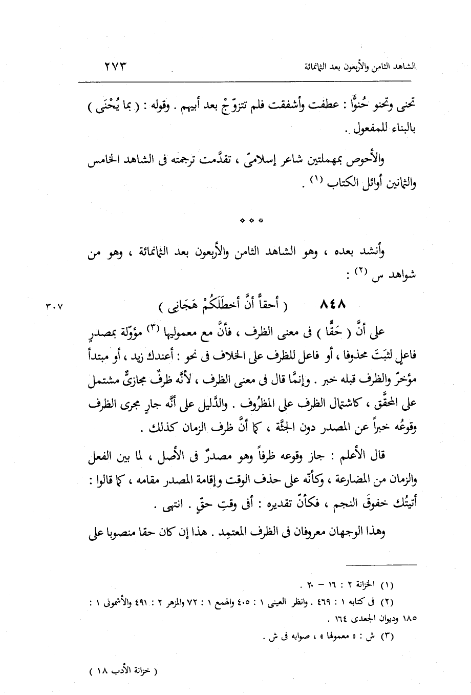 وَأنْشد بعده وَهُوَ من شَوَاهِد س: أحقاً أَن أخطلكم هجاني على أَن حَقًا فِي معنى الظّرْف فَأن مَعَ معموليها مؤولة بمصدر فَاعل لثبت محذوفاً أَو فَاعل للظرف على الْخلاف فِي نَحْو: أعندك زيد أَو مُبْتَدأ مُؤخر والظرف قبله خبر.