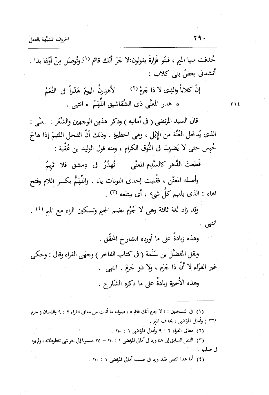 وَهَذِه زِيَادَة على وَنقل الْمفضل بن سَلمَة فِي كتاب الفاخر وَجْهي الْفراء وَقَالَ: وَحكى غير الْفراء لَا أَن ذَا جرم وَلَا ذُو جرم. انْتهى. وَهَذِه الْأَخِيرَة زِيَادَة على مَا ذكره الشَّارِح.