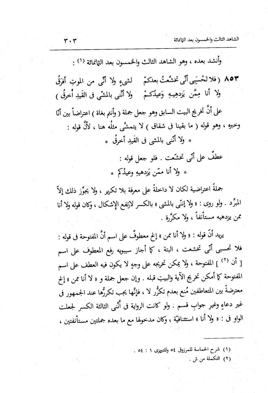 على أَن تَخْرِيج الْبَيْت السَّابِق وَهُوَ جعل جملَة وَأَنْتُم بغاة اعتراضاً بَين أَنا وَخَبره وَهُوَ قَوْله: مَا بَقينَا فِي شقَاق لَا يتمشى مثله هُنَا لِأَن قَوْله: وَلَا أنني بِالْمَشْيِ فِي الْقَيْد أخرق عطف على أَنِّي تخشعت. فَلَو جعل قَوْله: وَلَا أَنا مِمَّن يزدهيه وعيدكم جملَة اعتراضية لَكَانَ لَا دَاخِلَة على معرفَة بِلَا تَكْرِير وَلَا يجوز ذَلِك إِلَّا عِنْد الْمبرد.