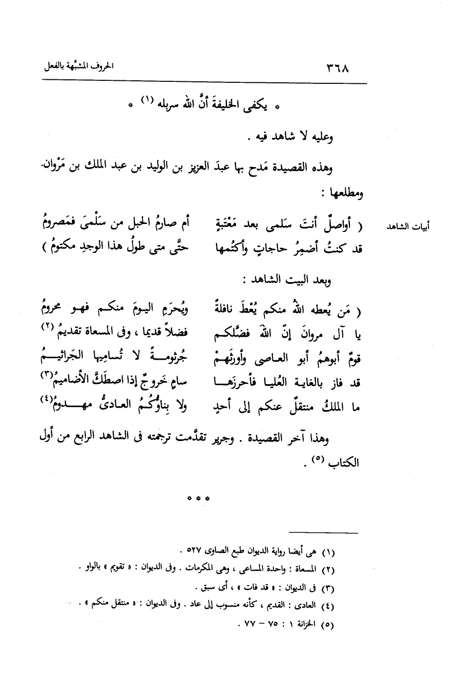 وَهَذَا آخر القصيدة. وَجَرِير تقدّمت تَرْجَمته فِي الشَّاهِد الرَّابِع من أول الْكتاب.