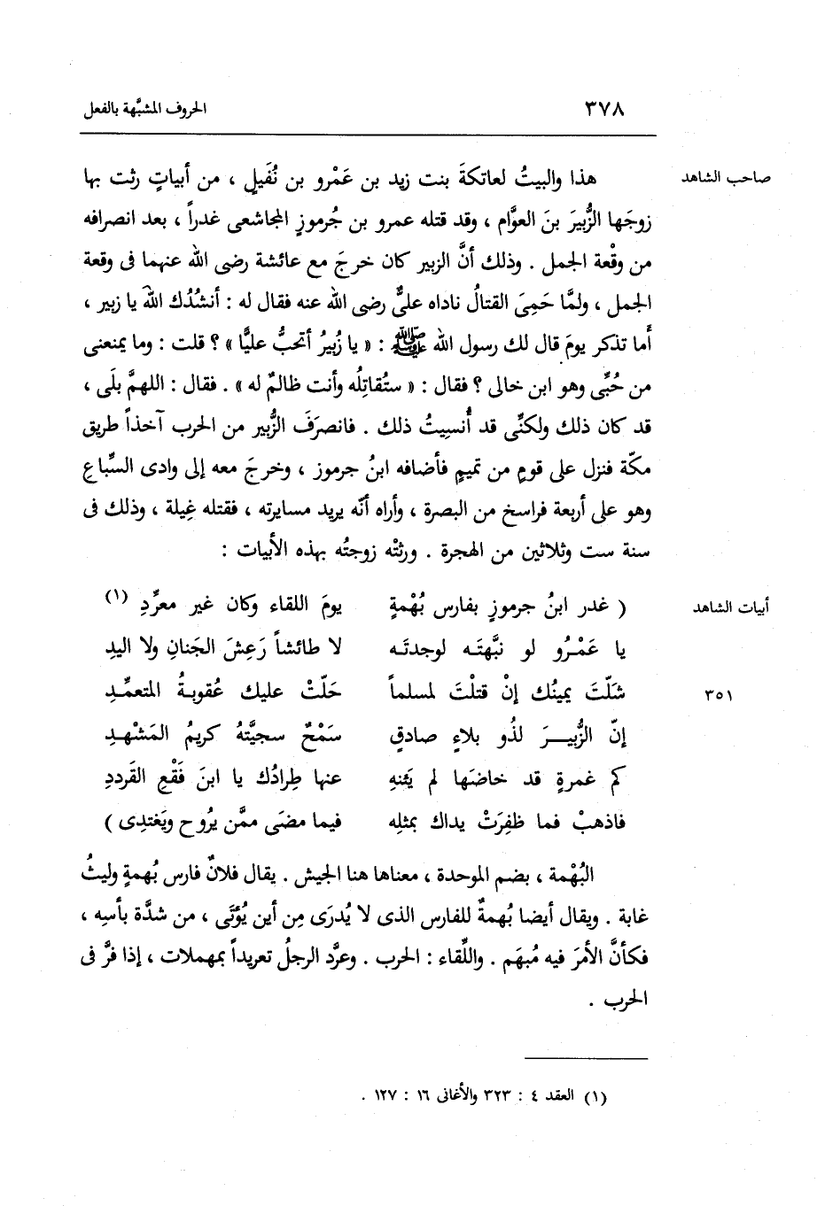 (غدر ابْن جرموز بِفَارِس بهمة ... يَوْم اللِّقَاء وَكَانَ غير معرد)