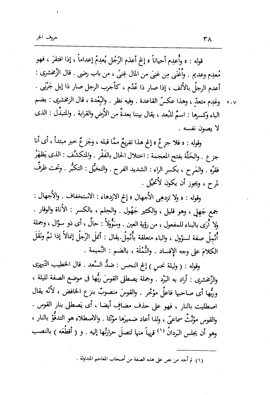 قَالَ الزَّمَخْشَرِيّ: أعدم الرجل بِالْألف إِذا صَار ذَا عدم كأجرب الرجل إِذا صَار ذَا إبل جربى والبعدة قَالَ الزَّمَخْشَرِيّ: بِضَم الْبَاء وَكسرهَا: اسْم للبعد يُقَال: بَيْننَا بعدة من الأَرْض والقرابة.