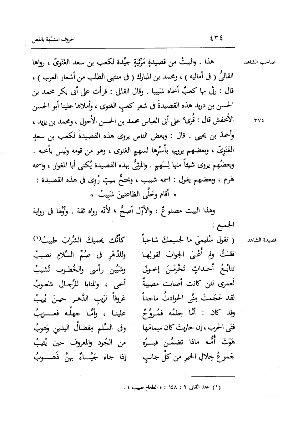 هَذَا. وَالْبَيْت من قصيدة مرثية جَيِّدَة لكعب بن سعد الغنوي رَوَاهَا القالي فِي أَمَالِيهِ وَمُحَمّد بن الْمُبَارك فِي مُنْتَهى الطّلب من أشعار الْعَرَب قَالَ: رثى بهَا كَعْب أَخَاهُ شبيباً.