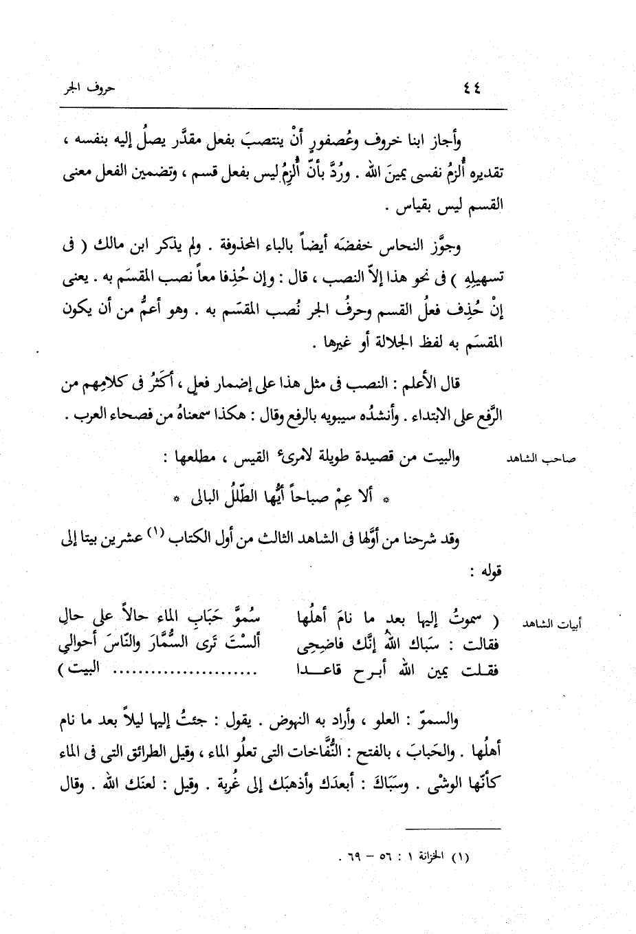 أَلا عَم صباحاً أَيهَا الطلل الْبَالِي وَقد شرحنا من أَولهَا فِي الشَّاهِد الثَّالِث من أول الْكتاب عشْرين بَيْتا إِلَى قَوْله: