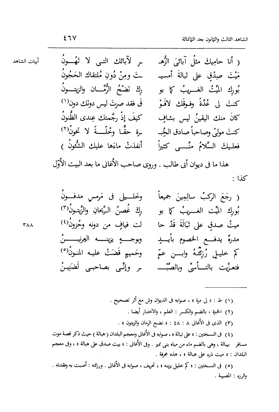 هَذَا مَا فِي ديوَان أبي طَالب. وروى صَاحب الأغاني مَا بعد الْبَيْت الأول كَذَا: