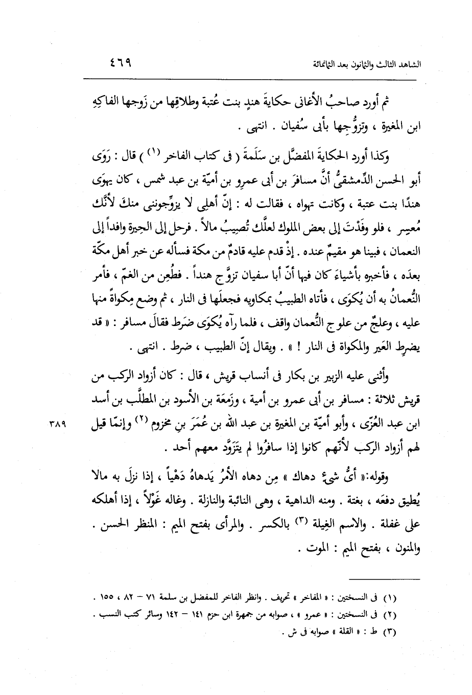 ثمَّ أورد صَاحب الأغاني حِكَايَة هِنْد بنت عتبَة وطلاقها من زَوجهَا الْفَاكِه بن الْمُغيرَة)