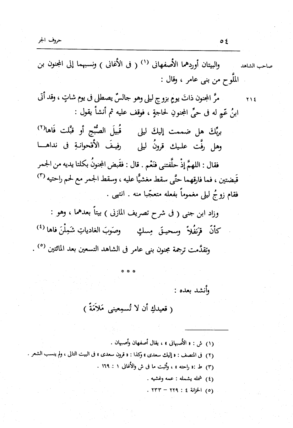فَقَالَ: اللَّهُمَّ إِذْ حلفتني فَنعم. قَالَ: فَقبض الْمَجْنُون بكلتا يَدَيْهِ من الْجَمْر قبضتين فَمَا فارقهما حَتَّى سقط مغشياً عَلَيْهِ وَسقط الْجَمْر مَعَ لحم راحتيه فَقَامَ زوج ليلى مغموماً بِفِعْلِهِ مُتَعَجِّبا وَزَاد ابْن جني فِي شرح تصريف الْمَازِني بَيْتا بعدهمَا وَهُوَ:)