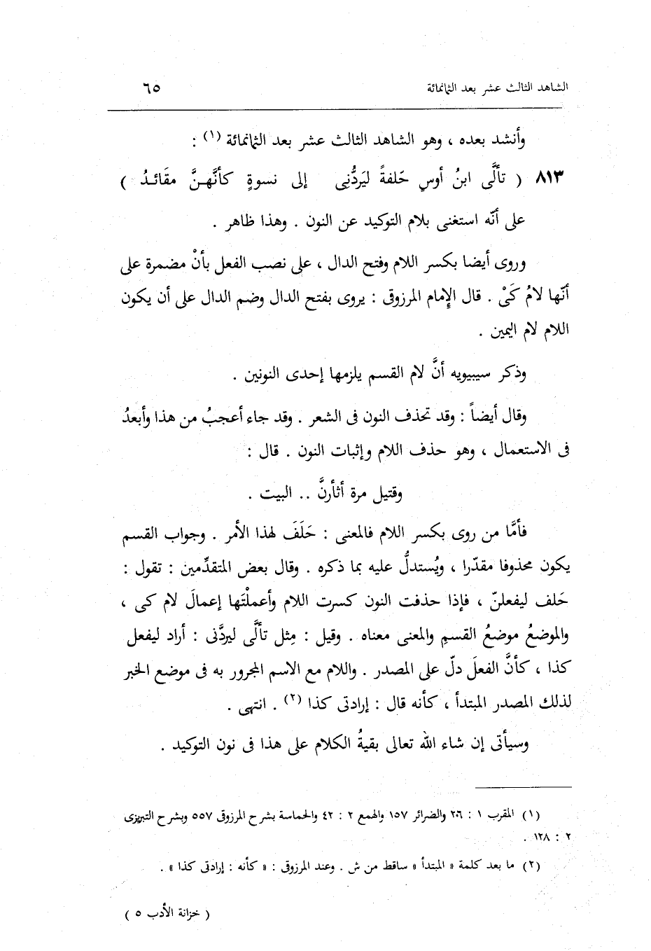 (الشَّاهِد الثَّالِث عشر بعد الثَّمَانمِائَة)