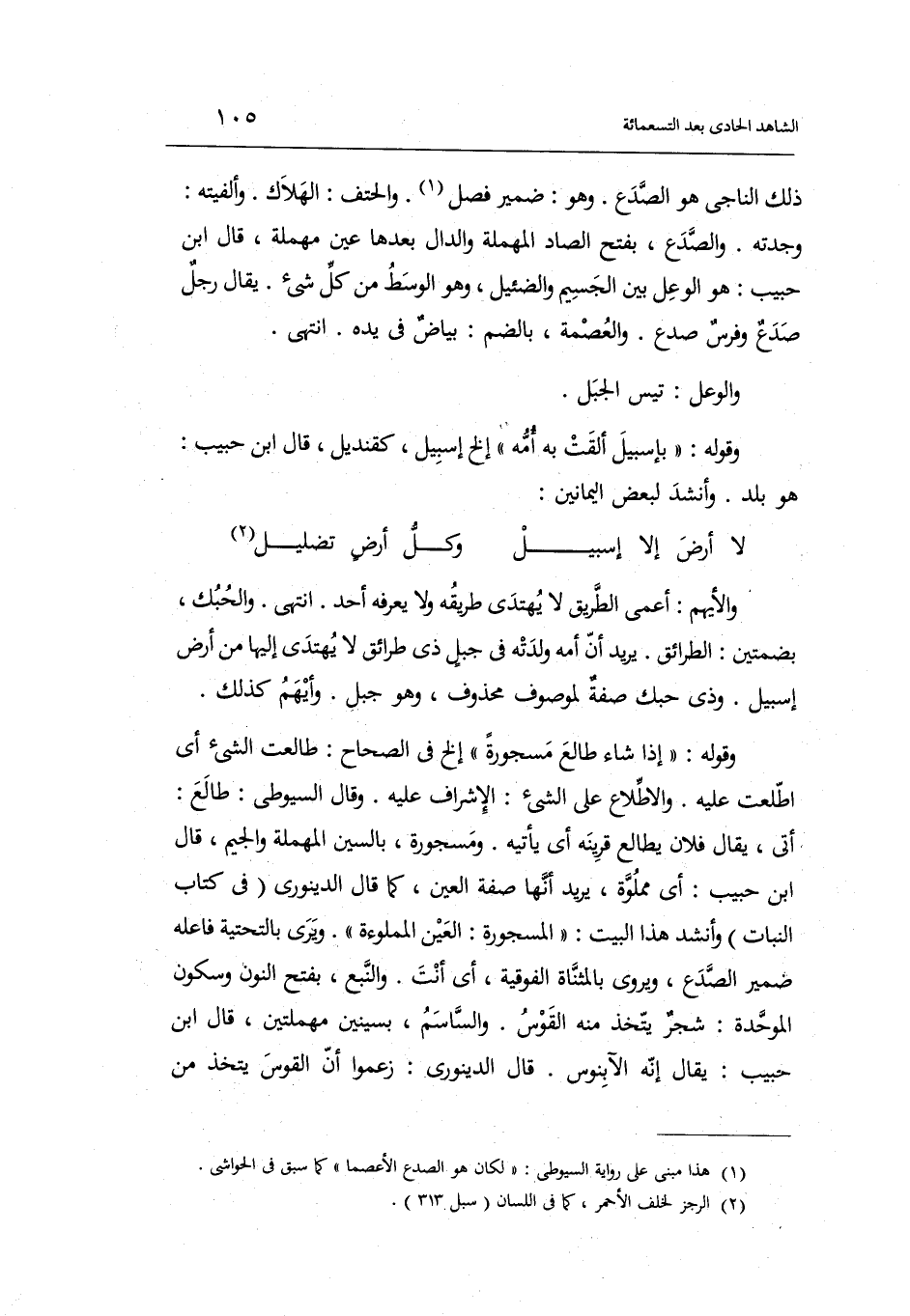 وَقَوله: بإسبيل أَلْقَت بِهِ أمه ... إِلَخ إسبيل كقنديل قَالَ ابْن حبيب: هُوَ بلد.