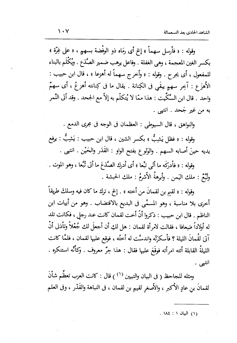 وَمثله للجاحظ فِي الْبَيَان والتبيين قَالَ: كَانَت الْعَرَب تعظم شَأْن لُقْمَان ابْن عَاد الْأَكْبَر والأصغر لقيم بن لُقْمَان فِي النباهة وَالْقدر وَفِي الْعلم