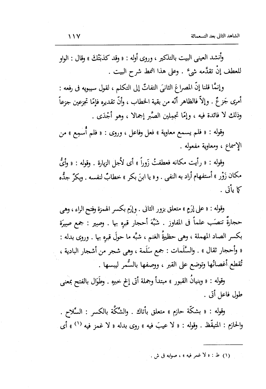 وَقَوله: رَأَيْت مَكَانَهُ فعطفت زوراً أَي: لأجل الزِّيَارَة وَقَوله: وَأي مَكَان زور اسْتِفْهَام أَرَادَ بِهِ النَّفْي. وَيَا ابْن بكر خطاب لنَفسِهِ. وَبكر جده كَمَا يَأْتِي.