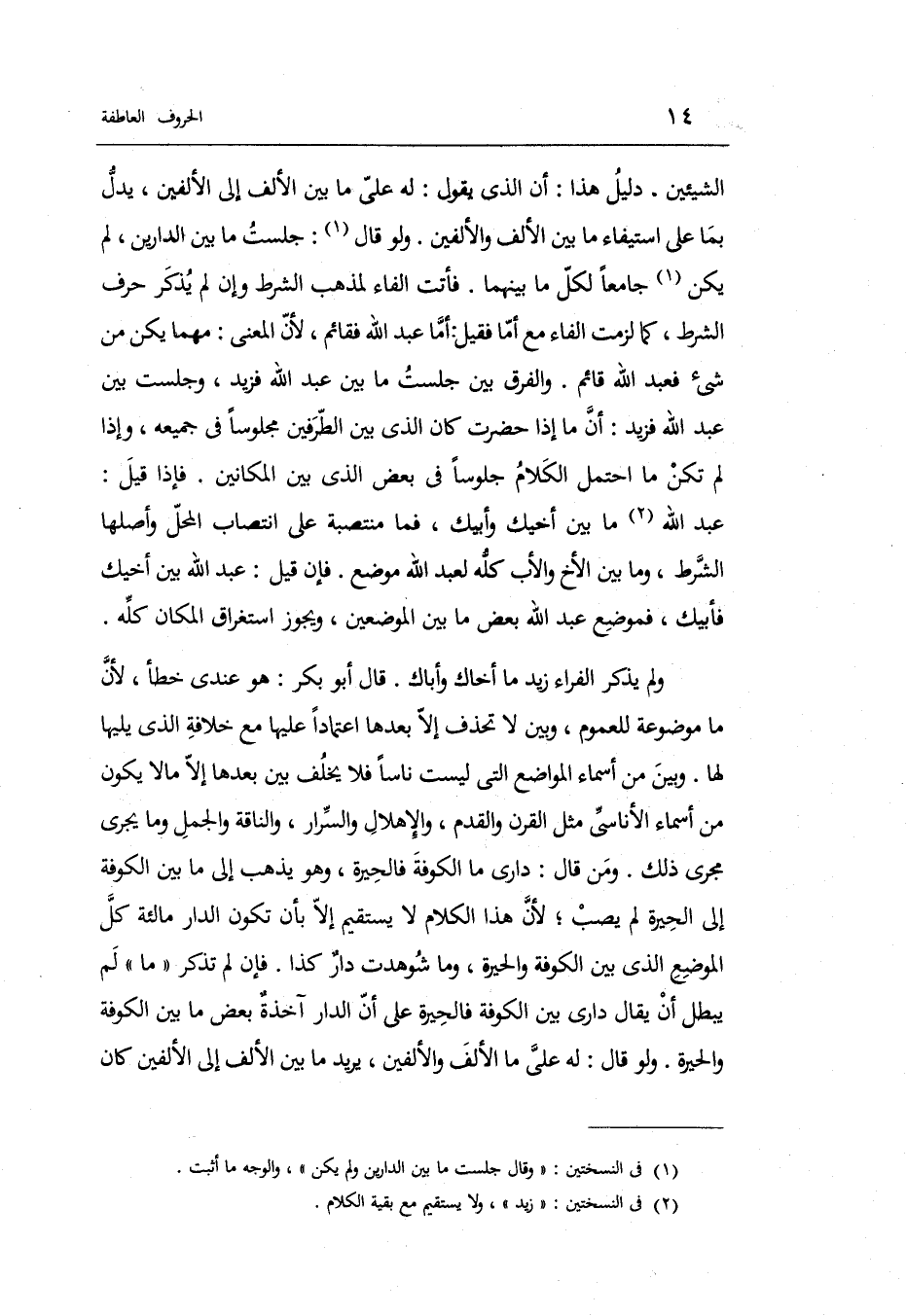 فَإِن لم تذكر مَا لم يبطل أَن يُقَال: دَاري بَين الْكُوفَة فالحيرة على أَن الدَّار آخذة بعض مَا بَين الْكُوفَة والحيرة وَلَو قَالَ: لَهُ عليّ مَا الْألف والألفين يُرِيد مَا بَين الْألف إِلَى الْأَلفَيْنِ كَانَ