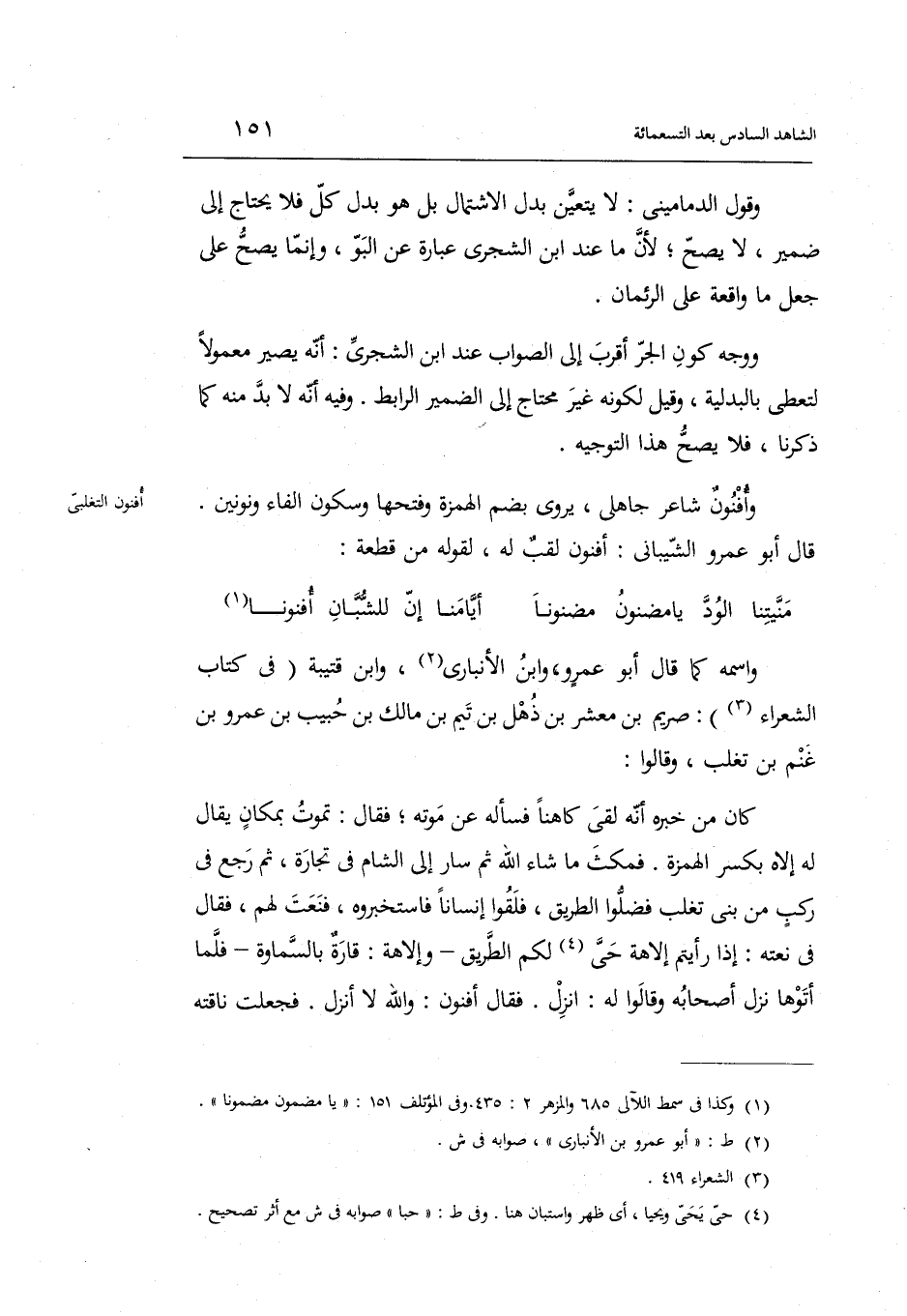 قَالَ أَبُو عَمْرو الشَّيْبَانِيّ: أفنون: لقب لَهُ لقَوْله من قِطْعَة: الْبَسِيط