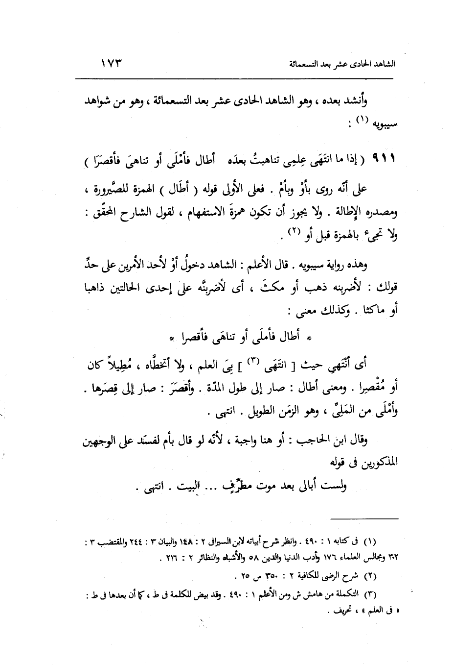 (الشَّاهِد لحادي عشر بعد التسْعمائَة)