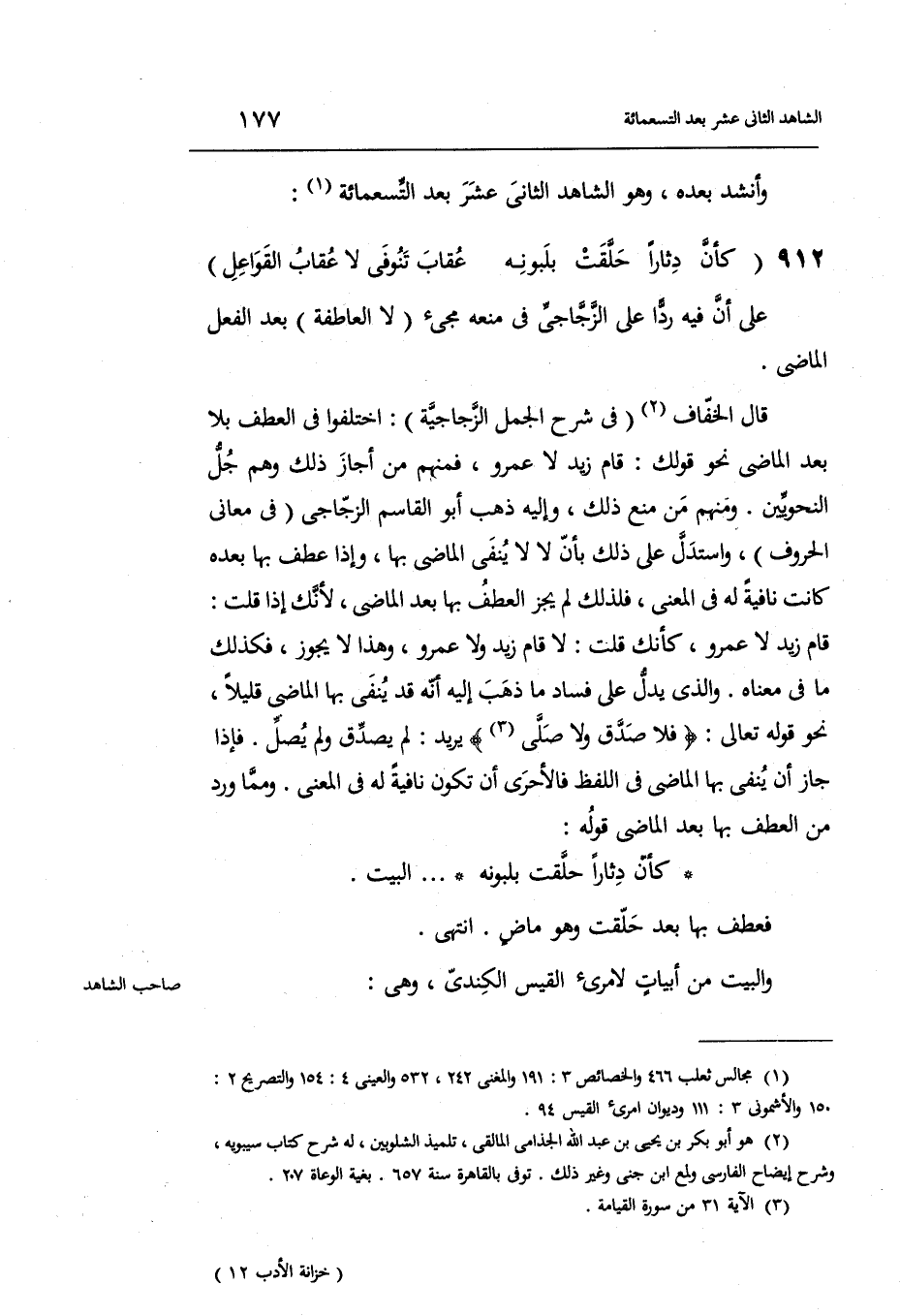 (الشَّاهِد الثَّانِي عشر بعد التسْعمائَة)